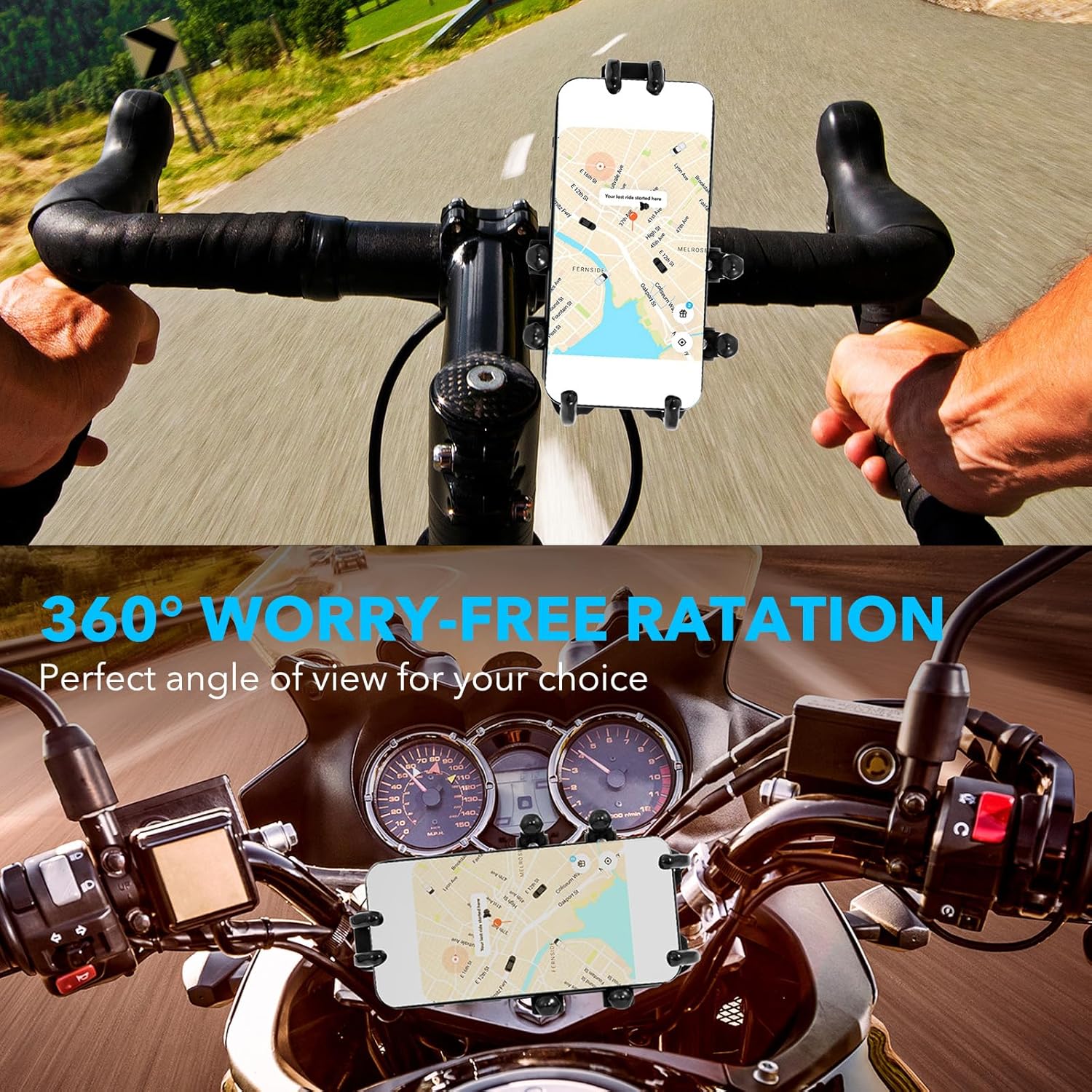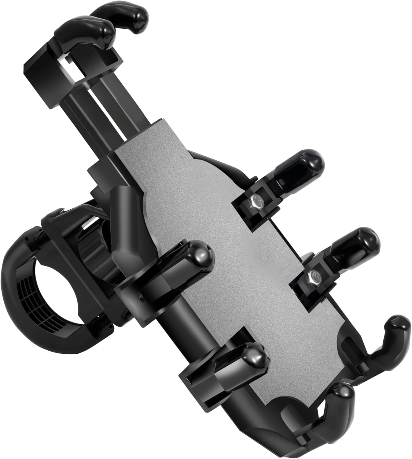 • [ Sturdy and Safe ] The main body of this motorcycle phone holder is made of high-strength composite materials, providing durability and reliability in the most demanding environments. Built-in high-quality industrial springs and a special eight-claw wrapping phone design ensure that your phone is securely fixed on the phone holder even when driving on bumpy roads.