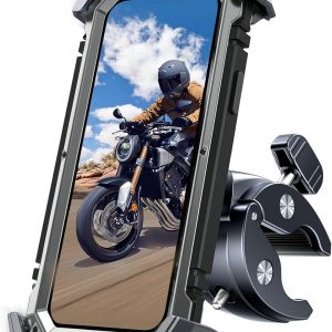 Bike Motorcycle Phone Mount,[Super Stable Metal] Bike Motorcycle Phone Holder with Security Lock, Bicycle Phone Mount with Soft Cushion & Adjustable Clip Compatible with 4.7”-6.8” Phone