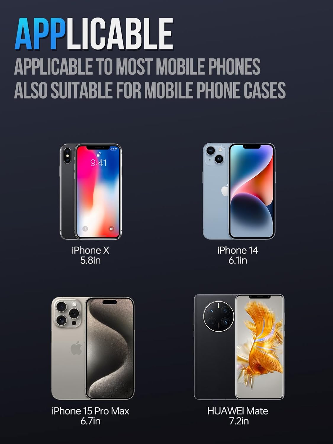 • 【 Wide Compatibility】 These universal bike accessories bike cell phone holder for 4.7 and 7.2 inches with thickness up to 15mm (including phone case), like iPhone 15, iPhone 15 Plus, iPhone 15 Pro, iPhone 15 Pro Max, iPhone 14 13 Pro Max, 12 Mini, Xs XR X 8 Plus 7 6s 6, Galaxy S10 + S10e S9 S8, Note 9, LG and other cell phones.