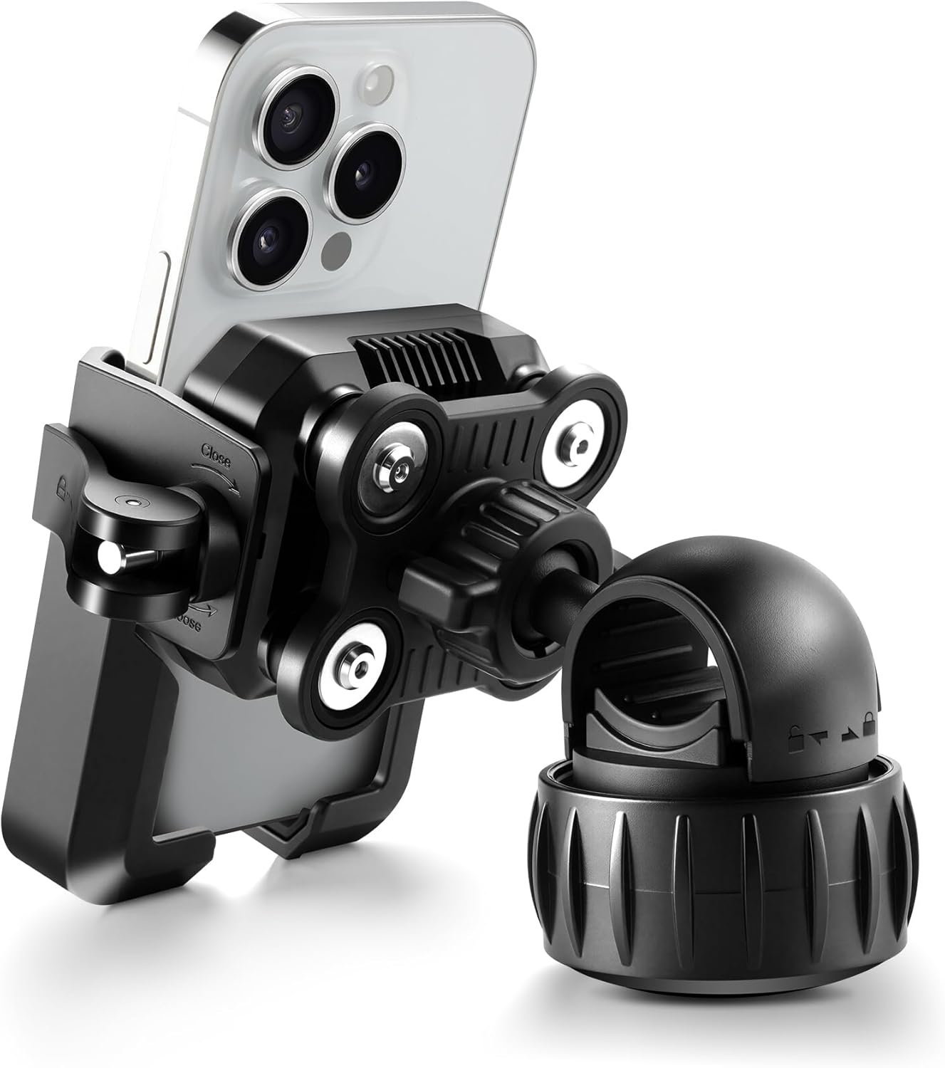 • 【Easy to Install】Fully upgraded high quality motorcycle phone mount,just one twist to easily fix the bike cell phone holder handlebar,as simple as tightening a bottle cap.We designed the handlebar clamp mount initially to avoid installation difficulties.