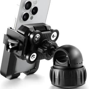 • ✔️ EFFORTLESS INSTALLATION – This handlebar phone mount is extremely easy to install and the best part is that you don’t need any tools! The secure and strong ball joint allows you to adjust the phone mount to any angle and customize the position for an enhanced riding experience.